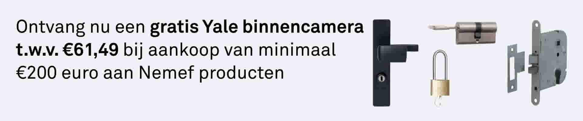 Ontvang nu een gratis Yale slimme binnencamera t.w.v. €61,49 bij aankoop van minimaal €200 euro aan Nemef producten