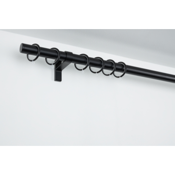 Deze 28 mm gordijnroede mat zwart is een basic gordijnroede welke je d.m.v. los verkrijgbare steunen aan de wand of het plafond bevestigd. De gordijnroede sluit je af met een decoratieve eindknop. De gordijnroede is evt. te verlengen d.m.v. een roedeverbinder.