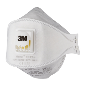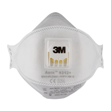 Het 3M™ Aura™ Stofmasker voor handmatig schuren 9312+ is ons gelaatsmasker met filter dat is voorzien van het Aura™ ontwerp met 3 panelen, een verstelbare neusbeugel, een voorgevormd neuspaneel, kleurgecodeerde hoofdbanden en het 3M™ Cool Flow™ uitademventiel voor comfortabel dragen. Het is FFP1-geclassificeerd en verkrijgbaar in een verpakking van 10 stuks.