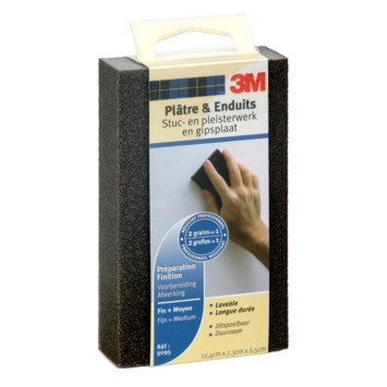 Het 3M schuurblok fijn/middel 12,4x7,3x2,5 cm middel is speciaal ontwikkeld voor comfortabel, effectief en efficiënt schuren van stuc- en pleisterwerk, gipsplaat en reparatiemiddel. Het schuurblok is uitspoelbaar en herbruikbaar. Je hebt hiermee 2 groftes in één. Medium aan één zijde en fijn aan de andere zijde. Aan één zijde afgerond voor schuren van hoeken. Gebruik eerst een medium korrel om grove oneffenheden te verwijderen en vervolgens een fijne korrel om de muur klaar te maken voor behang of muurverf.