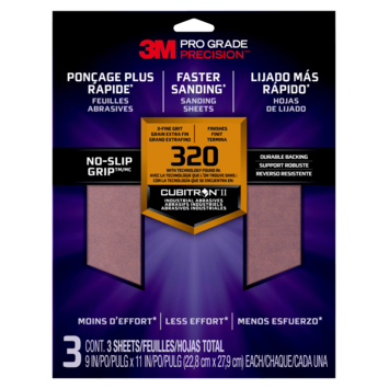 Voor nog beter en sneller schuren gebruik je 3M Schuurvellen Pro Grade Precision Korrel 320 Extra Fijn. Door de combinatie van een NO-SLIP GRIP™-achterzijde en premium mineraaltechnologie die wordt gebruikt in CUBITRON™ II industriële schuurmiddelen hebben deze schuurvellen een langere levensduur. Ook zorgt deze combinatie ervoor dat je minder snel vermoeide handen hebt en kost het minder inspanning.