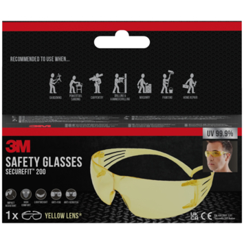 3M™ SecureFit™ 400 veiligheidsbrillen zijn onze wraparound veiligheidsbrillen met een gele, sterke, krasbestendige polycarbonaatlens. De brilveren hebben zachte uiteinden over de oren en de zachte instelbare neuskussentjes zorgen voor een comfortabele pasvorm. Het lichtgewicht ontwerp weegt slechts 35 g en heeft opvallende gele brilveren zodat de bril een echte blikvanger is.