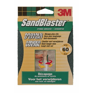 Het 3M™ SandBlaster™ schuurpad p60 groen is een zeer grof schuurpad voor het verwijderen van verf- of laklagen. Vooral voor afgeronde of geprofileerde oppervlakken is deze schuurpad een uitkomst. De schuurpad gaat tot drie keer langer mee en werkt drie keer sneller dan conventioneel schuurpapier met vergelijkbare grofheid. De afmetingen van deze schuurpad zijn 13,9 bij 11,4 centimeter. Tot slot is de pad zowel nat als droog te gebruiken, uitspoelbaar en herbruikbaar.