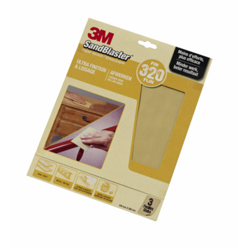 De 3M™ SandBlaster™ schuurpapier p320 3 stuks zijn drie vellen schuurpapier met korrel 320. De vellen hebben een afmeting van 230 bij 280 millimeter. Korrel 320 is een extreem fijn schuurpapier geschikt voor het afwerken en opschuren tussen twee verf- of laklagen in.