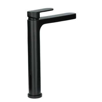 Ingetogen en elegant, zo is de Absolut Iode éénhendel wastafelkraan hoge uitloop met waste Zwart te omschrijven. Met de rechte lijnen, de platte afgeronde vormen en de mat zwarte afwerking heeft deze kraan een ingetogen uitstraling. Deze elegante kraan past in iedere badkamer, of die nu modern, landelijk of industrieel is.
