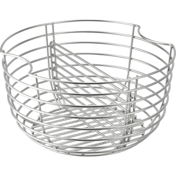 Deze set met houtskoolmand en as opvangbak is speciaal gemaakt voor kamado barbecues van 45,5 cm. De mand helpt je om het houtskool snel en gelijkmatig aan te steken. Dankzij de open structuur krijgt de lucht vrij spel, wat zorgt voor een goede verbranding en stabiele temperatuur. Tijdens het grillen blijft de hitte beter verdeeld over de barbecue. Na afloop verzamel je de as eenvoudig in de opvangbak onderin. Zo hoef je minder te scheppen en blijft je barbecue netjes. De onderdelen zijn robuust en functioneel, ideaal als je vaak barbecuet en snel weer klaar wilt zijn voor een volgende ronde.