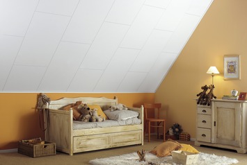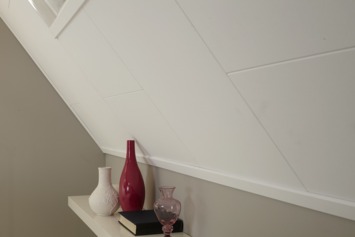 De Agnes plafondplaat fijn wit stuc is een plaat die voorzien is van een witte decorfolie met een fijn wit stuc motief. De Agnes plafondplaten hebben een afmeting van 120 x 60 cm en zijn eenvoudig te bevestigen met spijkers, schroefjes of nieten, waarbij de kop van de bevestiging niet in het basismateriaal mag doordringen. De platen zijn zeer geschikt voor het afwerken van bijvoorbeeld de schuine kap van de zolder.