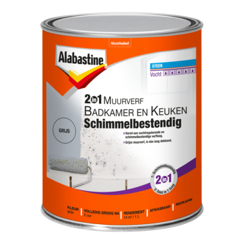 Alabastine 2in1 muurverf badkamer & keuken grijs schimmelbestendig 1 l