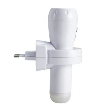 Deze zaklamp is inzetbaar als nachtlamp-/oriëntatiefunctie, ideaal voor een kinderkamer of overloop. De lamp gaat automatisch branden bij een stroomonderbreking. De lichtintensiteit is instelbaar: hoog, medium, laag, knipperend licht en een SOS functie (3 x kort, 3 x lang, 3 x kort). De zaklamp gaat automatisch aan wanneer deze uit de houder wordt genomen. Inclusief 3x AAA batterijen.