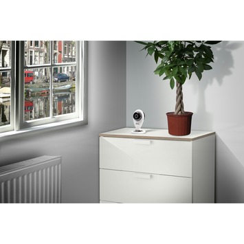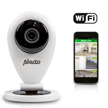 Met de DVC-105IP camera van Alecto kun je simpel, snel en veilig een camera installeren die je via je smartphone of tablet kan monitoren. De camera laat je 24/7 draaien en de beelden kunt je bekijken wanneer het uitkomt. Maar je kan ook vertrouwen op de bewegingssensor. Het systeem is zo te configureren dat zodra de camera een beweging detecteert er een pushbericht in je scherm verschijnt. Je schakelt dan vlug de app in om te kijken wat er aan de hand is en neemt met een druk op de knop de beelden in foto of video op. De IP camera is voorzien van een slot voor een SD-card zodat je altijd ruime opslagmogelijkheden hebt, en de beelden kan bewaren. De DVC-105IP IP camera werkt op een gratis app voor zowel Android- als Apple-gebruikers. Het systeem is uit te breiden met meerdere camera's, die je allemaal via dezelfde applicatie bedient en bekijkt. De camera maakt via WiFi - draadloos - verbinding met je thuisnetwerk. De app is daarmee verbonden via internet, dus je kan overal ter wereld de beelden live bekijken.
