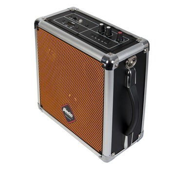 De MPA-12 is een kleine speaker van groot formaat. Ideaal op plekken waar geen stroomaansluiting is zoals een park, tuin of strand. De MPA-12 heeft een USB aansluiting, SD-kaart slot en Bluetooth. Hiermee kun je dus makkelijk je geluidsdrager koppelen of insteken. Zo kun je dus eenvoudig en snel van je favoriete muziek genieten. Met de ingebouwde accu kan de MPA-12 tot 2 uur spelen. Aan de netspanning is de MPA-12 in 3 uur opgeladen. Met de bijgevoegde draagband kan de MPA-12 omgehangen worden. Handig voor promotie activiteiten! De MPA-12 heeft een AUX 3,5mm jack ingang. Hiermee kan een MP3-speler of microfoon worden aangesloten.