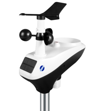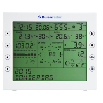 Het bestaat uit een mast met verschillende sensoren voor buiten (de buitenunit) en een prachtig meetdisplay voor binnen. De draadloze buitenunit is compleet: hij komt met een regenmeter, windsnelheidsmeter, windrichtingsensor, temperatuursensor en vochtigheidssensor. De buienmast wordt gevoed door een zonnepaneel. Dat is niet alleen duurzaam maar bovendien goedkoop. Alle data over de actuele neerslag, temperatuur, luchtvochtigheid en wind worden draadloos verzonden naar het prachtige grote scherm, en op een geanimeerde manier in beeld gebracht. Zo weet je altijd precies hoe de situatie buiten is.Daarnaast vertelt dit thuis weerstation je ook hoe het met de temperatuur ín huis is gesteld. Ook deze data wordt draadloos naar je display verzonden.