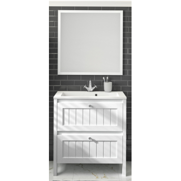 Dit Allibert badkamermeubel America 60 cm mat wit bestaat uit een staande onderkast, porseleinen lavaboblad en bijpassende spiegel met witte boord. De onderkast is volledig voorgemonteerd en bestaat uit twee softclose laden. De laden zorgen voor de benodigde opbergruimte om al je verzorgingsspullen in op te bergen. De wastafel is vervaardigd uit hoogwaardig porselein en kan je zelf eenvoudig op de onderkast plaatsen en afkitten. Dit typische cottage-stijl meubel brengt elegantie en het zon-zee-strand gevoel in je badkamer.