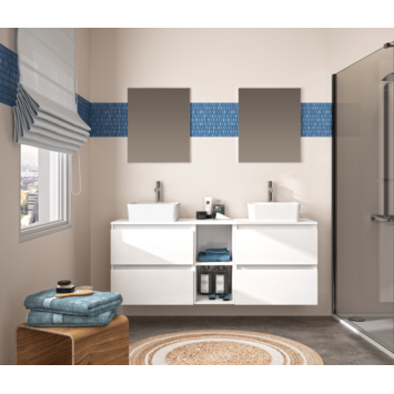 Allibert badmeubel Gaya 150 cm met spiegels Wit is een eigentijds meubel. Door zowel lades als legvakken toe te krijgt dit meubel een hele andere uitstraling dan standaard meubelen. Het voordeel van dit badmeubel is dat deze 150cm breed is. Hierdoor heb je extra veel ruimte om al je spullen op te bergen.