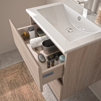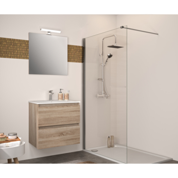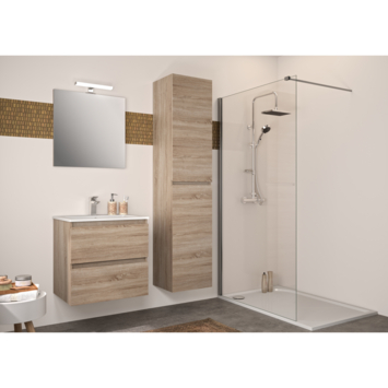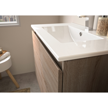 Het badkamermeubel Bazil van Allibert is een compleet meubel in de kleur eik hamilton. Het meubel is 60cm breed, maar is ook verkrijgbaar in 80cm breed. Allibert badmeubelset Bazil bestaat uit een onderkast, een wastafel en spiegel en LED-verlichting. Dit meubel heeft twee laden met een enkele sifon-uitsparing. De laden zijn voorzien van een softclose systeem. Liever deuren? Dit meubel is ook verkrijgbaar met twee deurtjes.