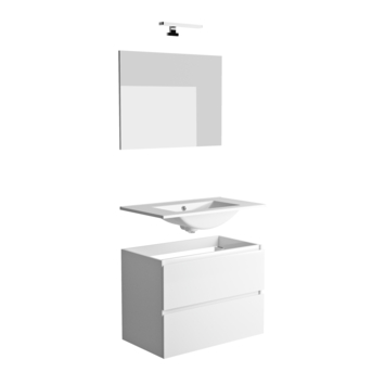 Het badkamermeubel ROMA is een meubelset in glanzend gelakt wit dat gemonteerd wordt geleverd. Het ondermeubel is 80 cm breed, 60 cm hoog en 46 cm diep en heeft 2 houten Soft Close lades. De set bestaat verder uit een 6 Watt LED-verlichting, een spiegel en een porseleinen wastafel. De kraan en sifon worden niet meegeleverd en kan u zelf nog kiezen. Dit meubel heeft 2 jaar garantie.