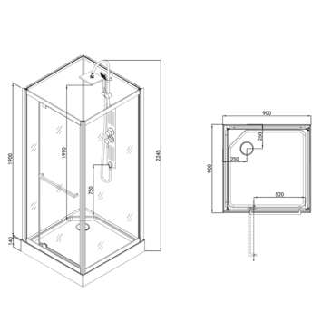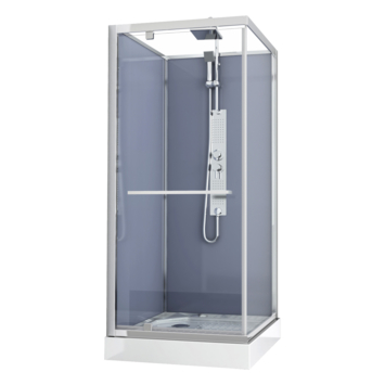 Met deze complete douchecabine Anapurna van Allibert haal je in één keer alles in huis om heerlijk te genieten van een ontspannende douche. Wel zo gemakkelijk! Dit hoekmodel van 90 x 90 cm heeft een luxe en moderne uitstraling. De achterwanden zijn in het grijs uitgevoerd en de cabine is afgewerkt met een mat aluminium profiel. Met een royale douchekolom, hydromassagestralen en een in 3 standen verstelbare handdouche pas je jouw douchesessies snel en eenvoudig aan naar jouw specifieke wensen. Dankzij de speciale antislip voorziening stap je veilig via de draaideur de cabine in en uit. Op het veiligheidsglas is een special coating aangebracht tegen kalk en zeepresten. Hierdoor maak je de wanden gemakkelijk schoon en blijft jouw douchecabine als nieuw!