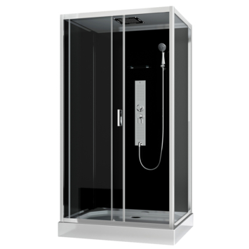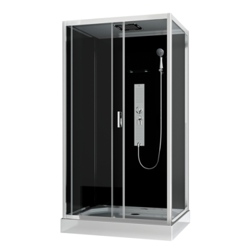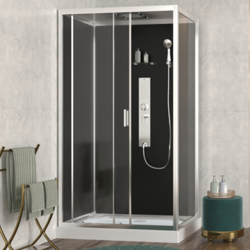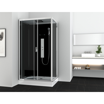 Met de complete douchecabine Gipsy van Allibert heb je alles in één keer geregeld voor een ontspannende douche. Geen gedoe meer! De extra ruime cabine van 80 x 120 cm heeft een moderne en luxe uitstraling. De achterzijde is uitgevoerd in het zwart en het geheel is afgewerkt met strakke glanzende aluminium profielen. Doe je ogen dicht en ben even op vakantie in je eigen huis. Met een ruime hoofddouche, hydromassagestralen en een verstelbare handdouche in 3 standen, kun je jouw douche-ervaring volledig aanpassen naar jouw wensen. De handige schuifdeur bespaart ruimte en is ideaal voor mensen met een kleinere badkamer die toch van maximaal douchecomfort willen genieten. De antislipfunctie op de vloer voorkomt uitglijden, terwijl de coating op het glas tegen vuil en kalkaanslag beschermt. Zo maak je de wanden makkelijk schoon en blijft jouw douchecabine er als nieuw uitzien.