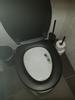 Mooie mat wc bril makkelijk te bevestigen . Plus door het knopje kun je hem er voor schoon te make. makkelijk afnemen