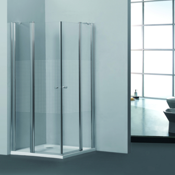 Deze Allibert Priva hoekinstap douchecabine van 90x90x190 cm, heeft 2 zwaaideuren voorzien van een magnetische sluiting. De cabine heeft een glastekening met kleine vierkantjes, het glas is ook voorzien van een anti-kalklaag aan 1 zijde. De verchroomde aluminium muurprofielen zijn regelbaar tot 2 cm.