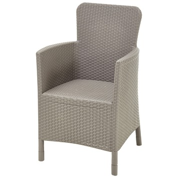De stapelstoel Miami cappuccino is een comfortabele tuinstoel. De stoel is mooi vormgegeven en strak afgewerkt, en biedt veel zitcomfort. De stoel is gemaakt van kunststof met een wicker uitstraling, uitgevoerd in de kleur cappuccino. De stoel is stapelbaar en wordt geleverd exclusief kussen.