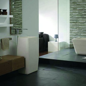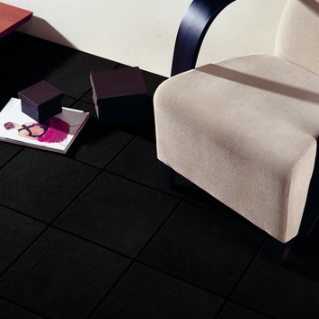 Robuuste zwarte tegel met mooie structuur op het oppervlakte. Goed te combineren in een stoer interieur.