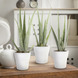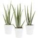 Een set van drie Aloë Vera planten met stijvolle bloempot in matwit. De van oorsprong oeroude Aloë Vera is één van de bekendste leden uit de familie van vetplanten. De Aloë Vera heeft mooie verdikte bladeren die bekend staan om hun helende werking. De planten zijn 25 centimeter hoog en hebben een potmaat 12 centimeter. De Aloë Vera is een fijne sterke plant, die weinig aandacht vraagt. Daarbij werkt Aloë Vera ook nog eens zeer luchtzuiverend.
