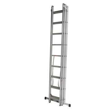 Ik heb deze ladder een paar jaar geleden gekocht. Twee weken geleden bij het naar beneden klimmen (zonder iets vast te hebben, ver onder 150kg !) braken plots tegelijk de twee steunen af en zakte ik met ladder en al naar beneden. Gelukkig stond de ladder nauwelijks uitgeschoven dus viel de valhoogte mee (2.5m). Cf. de arts een wonder dat ik geen blijvende rugschade heb. Deze ladder is echt levensgevaarlijk. Ik heb zowel de producent als TUV gemaild inmiddels.