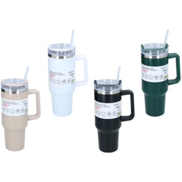 Blijf de hele dag gehydrateerd met deze trendy thermo tumbler cup. De grote inhoud van 1,2 liter is ideaal voor onderweg, op kantoor of tijdens het sporten. Dankzij het stevige deksel met rietje drink je makkelijk, zonder te morsen. Het ontwerp is trending én makkelijk. Praktisch, stijlvol en altijd klaar voor gebruik.