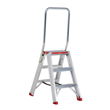 Deze Altrex Sierra SDO 3 x 2 professionele trap is dubbel oploopbaar, wat inhoudt dat de trap vanaf beide zijden te gebruiken. Wel zo makkelijk als je aan het werk bent, je hoeft hem tussentijds namelijk niet vaak te verschuiven. Dankzij het scharniersysteem dat beknelling van de vingers voorkomt, de antislip op de traptreden en de steunbeugel aan de bovenzijde, is deze trap extra veilig in het gebruik. Bovendien zorgt het open-trede-profiel ervoor dat de trap zeer licht van gewicht is en verplaats je hem met gemak.