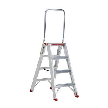 Deze Altrex Sierra SDO 4 x 2 professionele trap is dubbel oploopbaar, wat inhoudt dat de trap vanaf beide zijden te gebruiken. Wel zo makkelijk als je aan het werk bent, je hoeft hem tussentijds namelijk niet vaak te verschuiven. Dankzij het scharniersysteem dat beknelling van de vingers voorkomt, de antislip op de traptreden en de steunbeugel aan de bovenzijde, is deze trap extra veilig in het gebruik. Bovendien zorgt het open-trede-profiel ervoor dat de trap zeer licht van gewicht is en verplaats je hem met gemak.