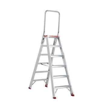 Deze Altrex Sierra SDO 6 x 2 professionele trap is dubbel oploopbaar, wat inhoudt dat de trap vanaf beide zijden te gebruiken. Wel zo makkelijk als je aan het werk bent, je hoeft hem tussentijds namelijk niet vaak te verschuiven. Dankzij het scharniersysteem dat beknelling van de vingers voorkomt, de antislip op de traptreden en de steunbeugel aan de bovenzijde, is deze trap extra veilig in het gebruik. Bovendien zorgt het open-trede-profiel ervoor dat de trap zeer licht van gewicht is en verplaats je hem met gemak.