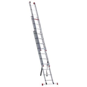 De lichtgewicht Altrex Allround reformladder 3x10 is te gebruiken als reformladder en opsteekladder. Het in- en uitschuiven langs de gevel wordt vergemakkelijkt door de toprollen. De reformhaak zorgt ervoor dat de ladder eenvoudig in een A-stand te plaatsen is. De opsteekhaak met veiligheidspal voorkomt dat de ladder ongewild inschuift en de stabiliteitsbalk zorgt voor extra stabiliteit. De ladder heeft een maximale belasting van 150kg, weegt 16,5kg en heeft een maximale werkhoogte van 7,50 meter. Vrijstaand heeft de ladder een werkhoogte van 4,30 meter, uitgeschoven is de ladder 6,65 meter en ingeschoven (om op te bergen) is hij 2,60 meter lang. De unieke Rode Sport/Trede zorgt voor een maximale veilige stahoogte. De ladder heeft een garantie van 5jaar.