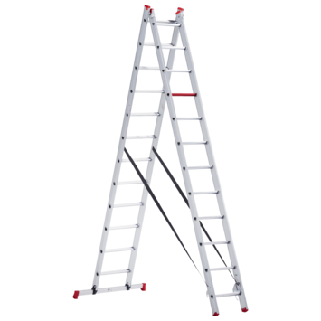Een trap die je als schuifladder tegen je huis kunt zetten én als A-ladder kunt gebruiken, dat is de Atlantis reformladder van Altrex. De kenmerkende blauwe coating zorgt niet alleen voor een mooi uiterlijk, het zorgt er eveneens voor dat de ladder vuilafstotend is. De opsteekhaak met veiligheidsgrendel voorkomt dat de reformladder inschuift terwijl je hem gebruikt. De drukvaste spreidbeveiliging voorkomt ditzelfde probleem wanneer hij in de A-stand staat. Dankzij het lichtgewicht aluminium is de Atlantis reformladder makkelijk te verplaatsen. Het stavlak met antislipprofiel geeft je meer ruimte en daarmee meer stacomfort. Kortom: een goede keuze voor zowel de thuisklusser als de professional.