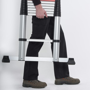 Door de flexibel instelbare werkhoogte van de ladder en het comfortabele stavlak, is dit een prettige ladder om mee te werken. Dankzij de unieke centrale bediening is de Altrex telescopische ladder in slechts één handeling te ontgrendelen en schuif je hem automatisch in. Zodra je de ladder opent, zorgt het soft-closesysteem ervoor dat de ladder geleidelijk schuift en worden je vingers goed beschermd. Door het telescopische mechanisme is deze ladder zeer compact op te bergen.
