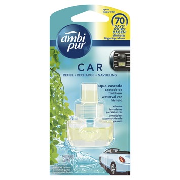 De Ambi Pur navulverpakking 'Aqua' verspreidt een heerlijke geur tijdens het autorijden. Deze luchtverfrisser die speciaal gemaakt is voor in de auto, zorgt ervoor dat je auto altijd fris ruikt. De geurverspreider zuivert de autolucht met behulp van een membraantechnologie. Zo reis je comfortabel, zonder last te krijgen van een onaangename autogeur. De Ambi Pur Geurverspreider 'Aqua' is onderdeel van de uitgebreide Ambi Pur-lijn met verschillende geuren. Je bevestigt de kleine luchtverfrisser met een clip op het ventilatierooster, zodat deze niet in de weg zit. Kortom, met de Ambi Pur Geurverspreider 'Aqua' ga je wekenlang in een fris ruikende auto de weg op.