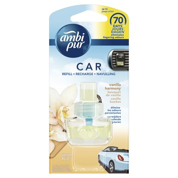 De Ambi Pur Auto Luchtverfrisser 'Vanilla' NV is een navulverpakking waarmee u uw auto opnieuw fris laat ruiken. De navuller met vanillegeur past in de oorspronkelijke houder van uw Ambi pur-luchtverfrisser. Met de clip bevestigt u de navulverpakking stevig op het ventilatierooster. De Ambi Pur Auto Luchtverfrisser 'Vanilla' NV is een van de veel verschillende geuren uit het assortiment van Ambi Pur. Met een navulverpakking rijdt u tot wel 70 dagen zorgeloos in een frisse auto rond. Dankzij het vloeibare parfum van de Ambi Pur Auto Luchtverfrisser 'Vanilla' NV ruikt uw auto fris en aangenaam.