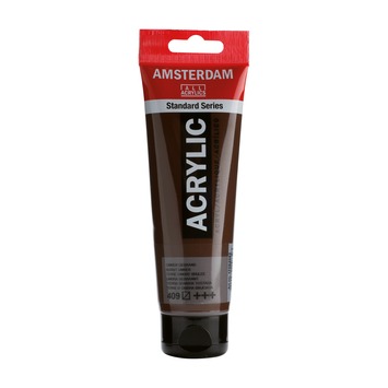 Tube met 120 ml halftransparante Amsterdam acrylverf met een uitstekende lichtechtheid. Je werkstuk blijft, ook na vele tientallen jaren, net zo mooi als op de dag dat jij het hebt geschilderd. Amsterdam acrylverf is een veelzijdige verf die geschikt is voor verschillende ondergronden. Naast toepassingen op schildersdoek, wordt deze verf ook veel gebruikt voor het decoreren van wanden, gebruiksvoorwerpen en andere 3D objecten. Je kunt de verf met water verdunnen en je kunt je penselen gewoon met wat water schoonspoelen. Dunne lagen zijn binnen een half uur droog, je kunt dus lekker snel doorwerken.