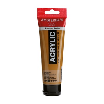 120 ml dekkende Amsterdam acrylverf in handige tube met afneembare sluitdop. Deze verf heeft een uitstekende lichtechtheid. Je werkstuk blijft, ook na vele tientallen jaren, net zo mooi als op de dag dat jij het hebt geschilderd. Amsterdam acrylverf is een veelzijdige verf die geschikt is voor verschillende ondergronden. Naast toepassingen op schildersdoek, wordt deze verf ook veel gebruikt voor het decoreren van wanden, gebruiksvoorwerpen en andere 3D objecten. Je kunt de verf met water verdunnen en je kunt je penselen gewoon met wat water schoonspoelen. Dunne lagen zijn binnen een half uur droog, je kunt dus lekker snel doorwerken.