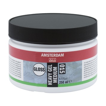 Met Amsterdam heavy gel medium glanzend kun je acrylverf vol en pasteus maken. Bovendien geeft het je werk een prachtige glanzende uitdrukking. Dit gel medium is ideaal om mee te experimenteren en nieuwe grenzen op te zoeken. Het medium is wit, maar droogt transparant op. Houd er wel rekening mee dat de verf door toevoeging van het gel medium ook wat transparanter wordt. Een fantastisch product om bijvoorbeeld prachtige hoogteverschillen aan te brengen. Maar ook om bijzondere effecten te creëren door er allerlei materialen mee in je werkstuk te verlijmen zoals zand, steentjes of stukjes textiel. De kunststof flacon van 250 ml heeft een grote opening, waardoor je de inhoud er makkelijk uit kunt scheppen.