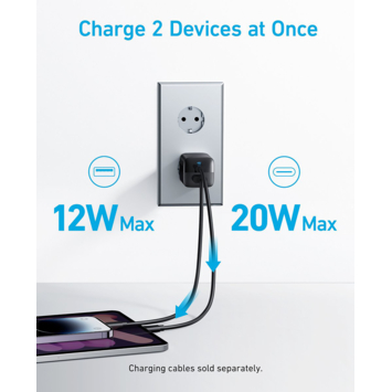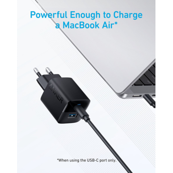 De Anker 323 USB-C dual snellader zwart is een compacte oplader waarmee je eenvoudig twee apparaten tegelijk oplaadt. De 33W USB-C Power Delivery-poort laadt telefoons, tablets en andere apparaten tot drie keer sneller op dan een standaardoplader. Daarnaast is er een USB-A-poort aanwezig, zodat je flexibel verschillende apparaten kunt aansluiten.