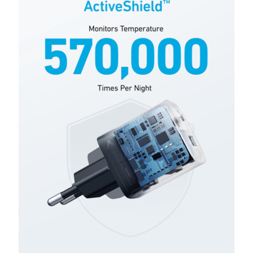 Het compacte ontwerp zorgt ervoor dat je de oplader makkelijk meeneemt in je tas of jaszak, ideaal voor onderweg of op reis. Voor de veiligheid is de lader voorzien van het ActiveShield-systeem, dat voortdurend de temperatuur en het vermogen controleert. Zo blijven je apparaten beschermd en de oplader betrouwbaar tijdens gebruik.