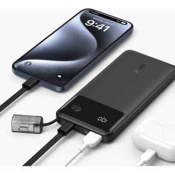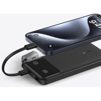 De Anker powerbank snelladen 10.000 mAh zwart is een lichte en compacte oplader waarmee je onderweg altijd extra energie bij de hand hebt. Ondanks het slanke ontwerp levert de accu genoeg capaciteit om je telefoon of andere apparaten meerdere keren op te laden. Met een maximaal vermogen van 22,5 watt ondersteunt de powerbank verschillende snellaadtechnieken zoals Power Delivery (PD), Quick Charge (QC) en SuperCharge Protocol (SCP).