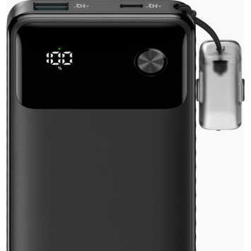 Je kunt drie apparaten tegelijk aansluiten via de USB-C en USB-A poorten. De USB-C poort ondersteunt 20W Power Delivery, terwijl een speciale druppellaadmodus geschikt is voor kleinere apparaten zoals oordopjes. Dankzij het formaat past de powerbank makkelijk in je zak of tas, waardoor hij handig is voor dagelijks gebruik of onderweg.