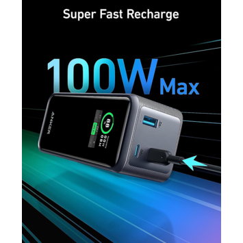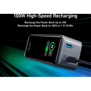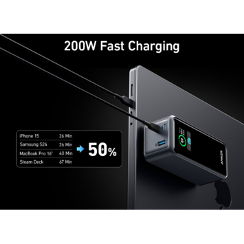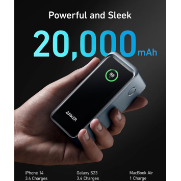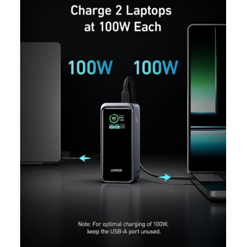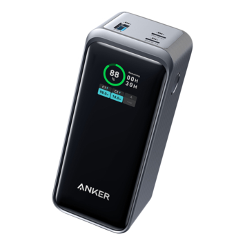 De Anker Prime powerbank snelladen 20.000 mAh (200W) is een compacte externe accu waarmee je meerdere apparaten tegelijk van stroom voorziet. Dankzij twee USB-C-poorten van elk 100 watt en een USB-A-aansluiting laad je zelfs twee laptops tegelijkertijd snel op. Daarmee is de powerbank geschikt voor zowel krachtige apparaten zoals MacBooks en notebooks als voor tablets en telefoons.