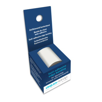 Zelfklevend kantenband Dublin (Pure white) voor Aquastep vensterbanken en platen. Eenvoudig op maat te snijden met een stanleymes. Rol 2600 x 35 mm