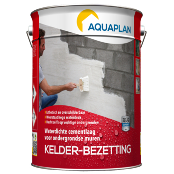 Met Aquaplan Kelder-bezetting cement waterdicht 5 kg maak je jouw kelder of andere ondergrondse beton- of cementconstructies eenvoudig waterdicht. De witte coating is geschikt voor zowel vochtige als droge ondergronden (behalve vloeren), en zorgt voor een permanente waterdichte afwerking. Je kunt de coating overschilderen voor een strakke afwerking en het is geschikt voor zowel binnen- als buitentoepassing. Dankzij de kelder-bezetting-kwast is het aanbrengen eenvoudig. Bescherm je kelder tegen vocht met deze effectieve cementcoating.