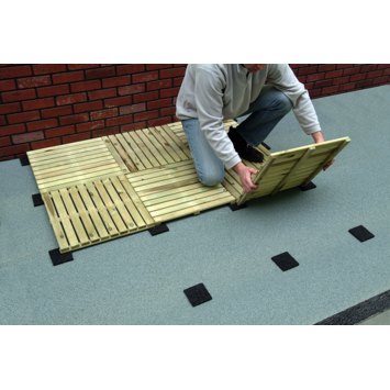 Prima dragers voor balkon van vlonders op dakterras, zodat de balken niet in het water liggen.
