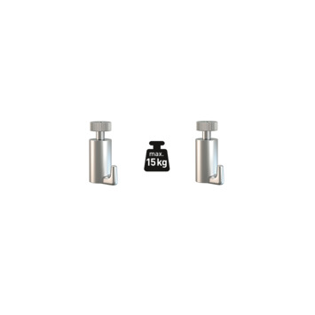De Artiteq haak 15kg, 2 stuks, is geschikt voor het Artiteq schilderij ophangsysteem. Deze haken hebben een draag capaciteit van 15 kilo per stuk. De haken dienen gebruikt te worden in combinatie met perlon- of staaldraad van Artiteq. Samen met de ophangdraden van Artiteq, is het ophangen van wanddecoraties aan
