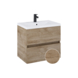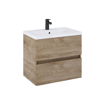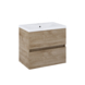 Dit badkamermeubel in eikenkleur met geïntegreerde keramische wastafel brengt rust en overzicht in de badkamer. Het meubel combineert een compact formaat met ruime opberglades, zodat toiletartikelen, handdoeken en verzorgingsproducten netjes opgeborgen zijn. De twee diepe lades met softclose-sluiting zorgen voor een gecontroleerd en stil gebruik, terwijl het greeploze front het geheel strak houdt. De keramische wastafel vormt één geheel met de onderkast en is direct klaar voor montage. De warme eikenkleur voegt een natuurlijke uitstraling toe en past bij verschillende badkamerstijlen. Doordat de kraan niet inbegrepen is, kies je zelf een uitvoering die bij jouw stijl past.